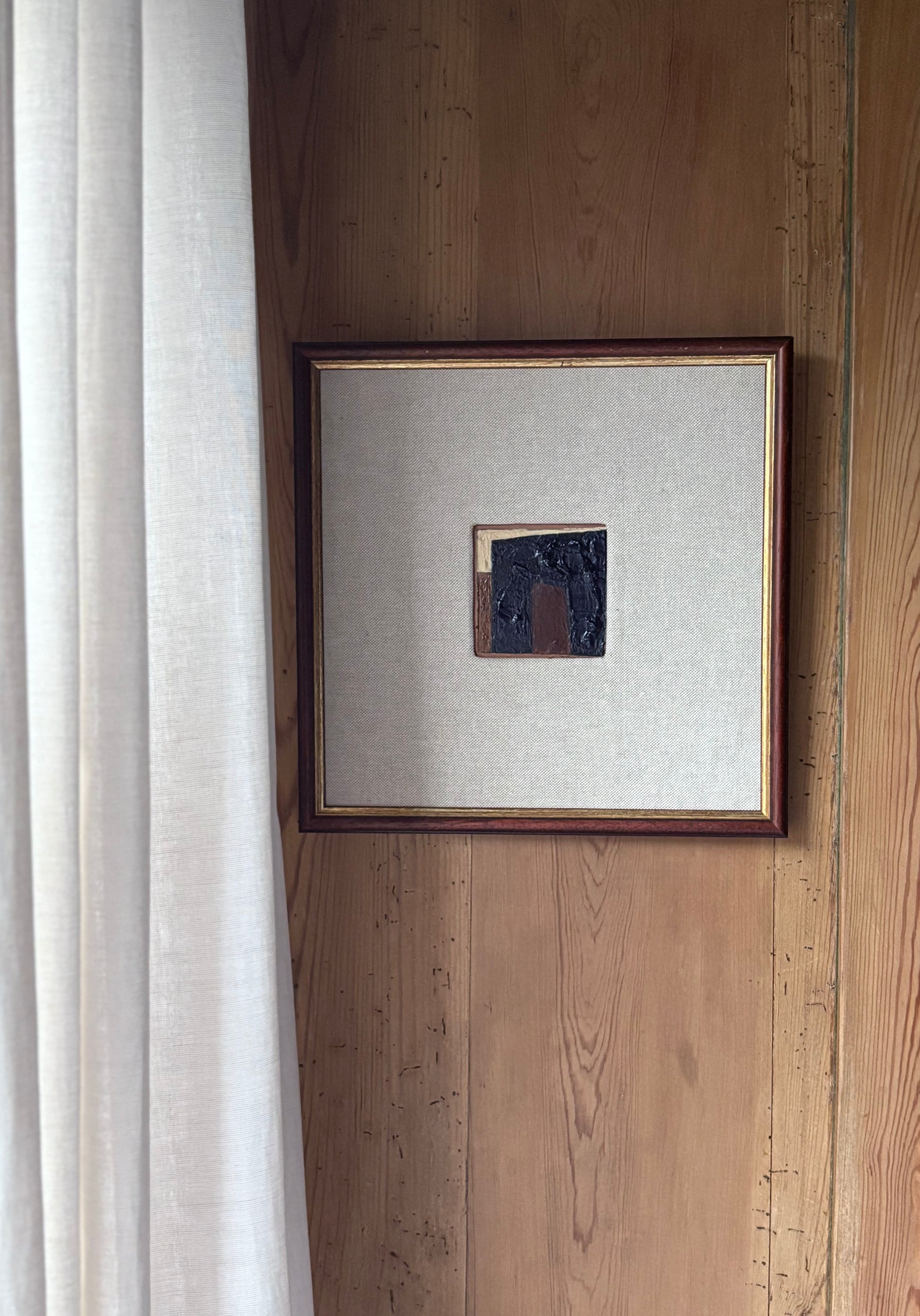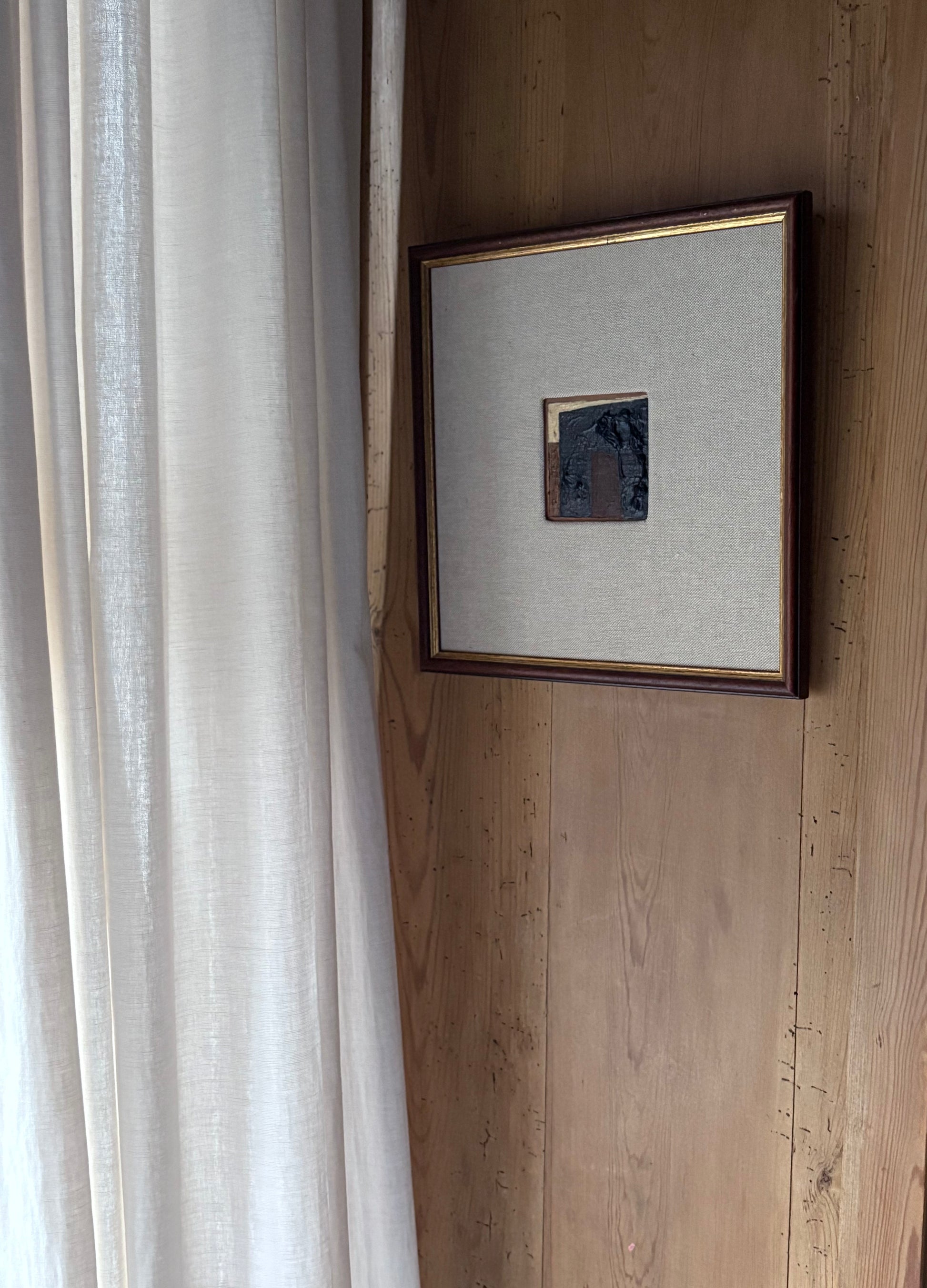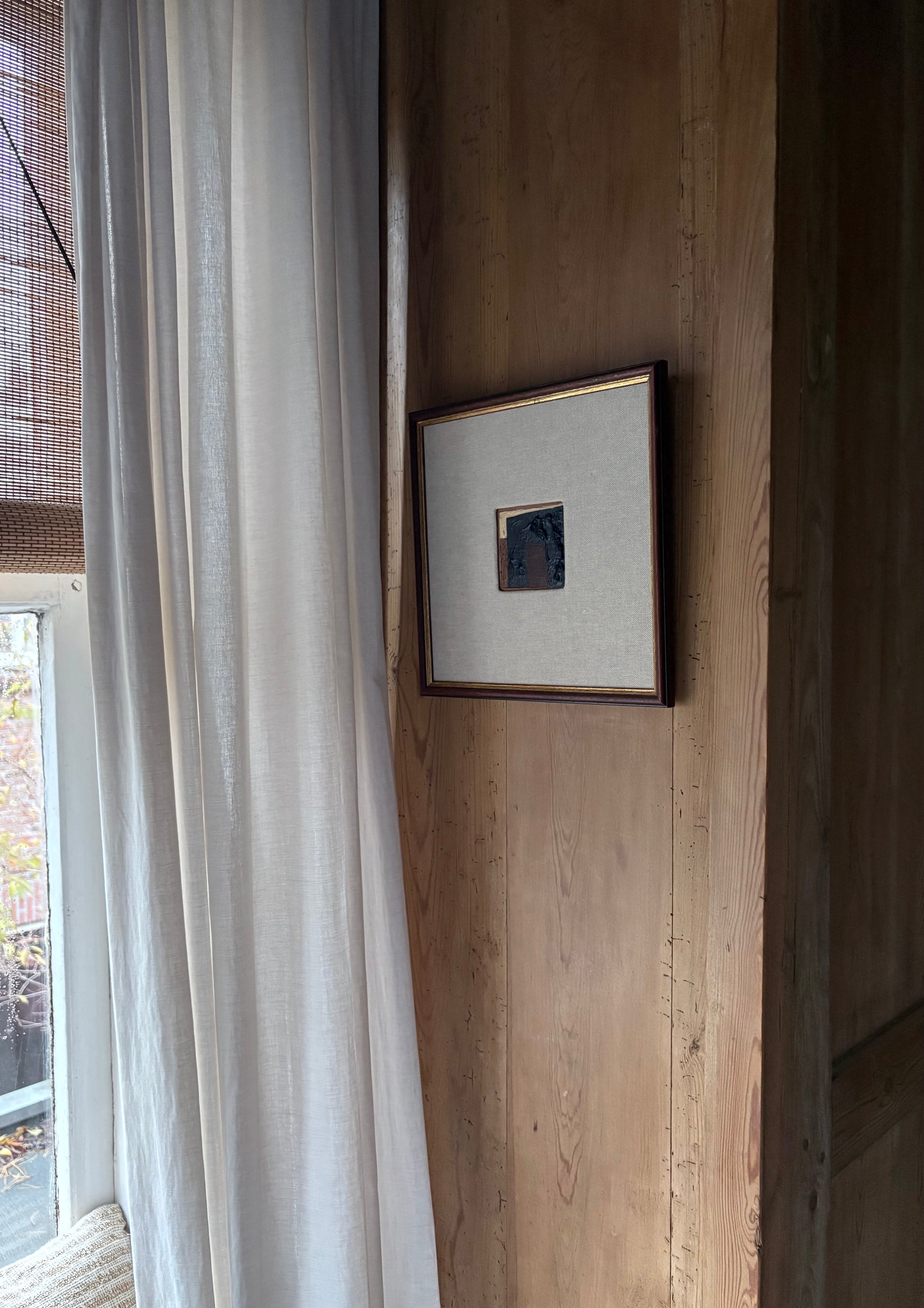 Klein abstract mixed media werk met een hand bekleed linnen passe-partout uit de serie " winter blues"