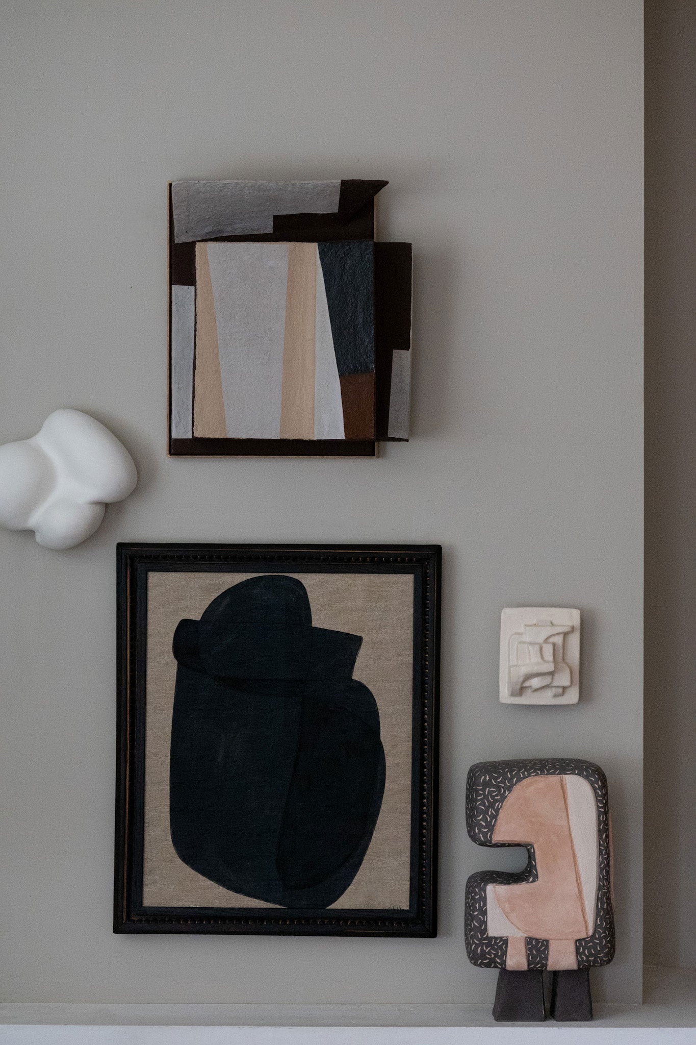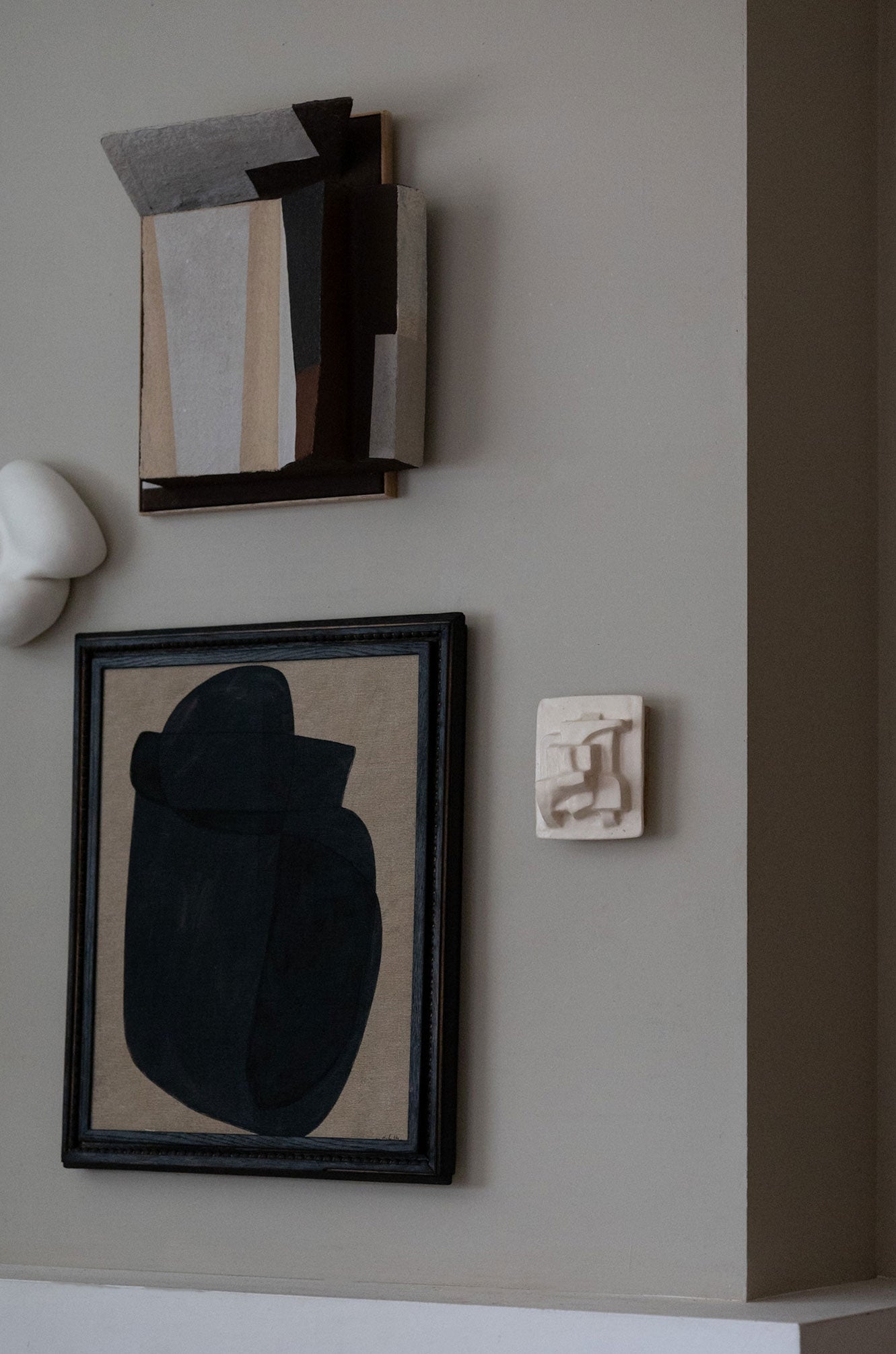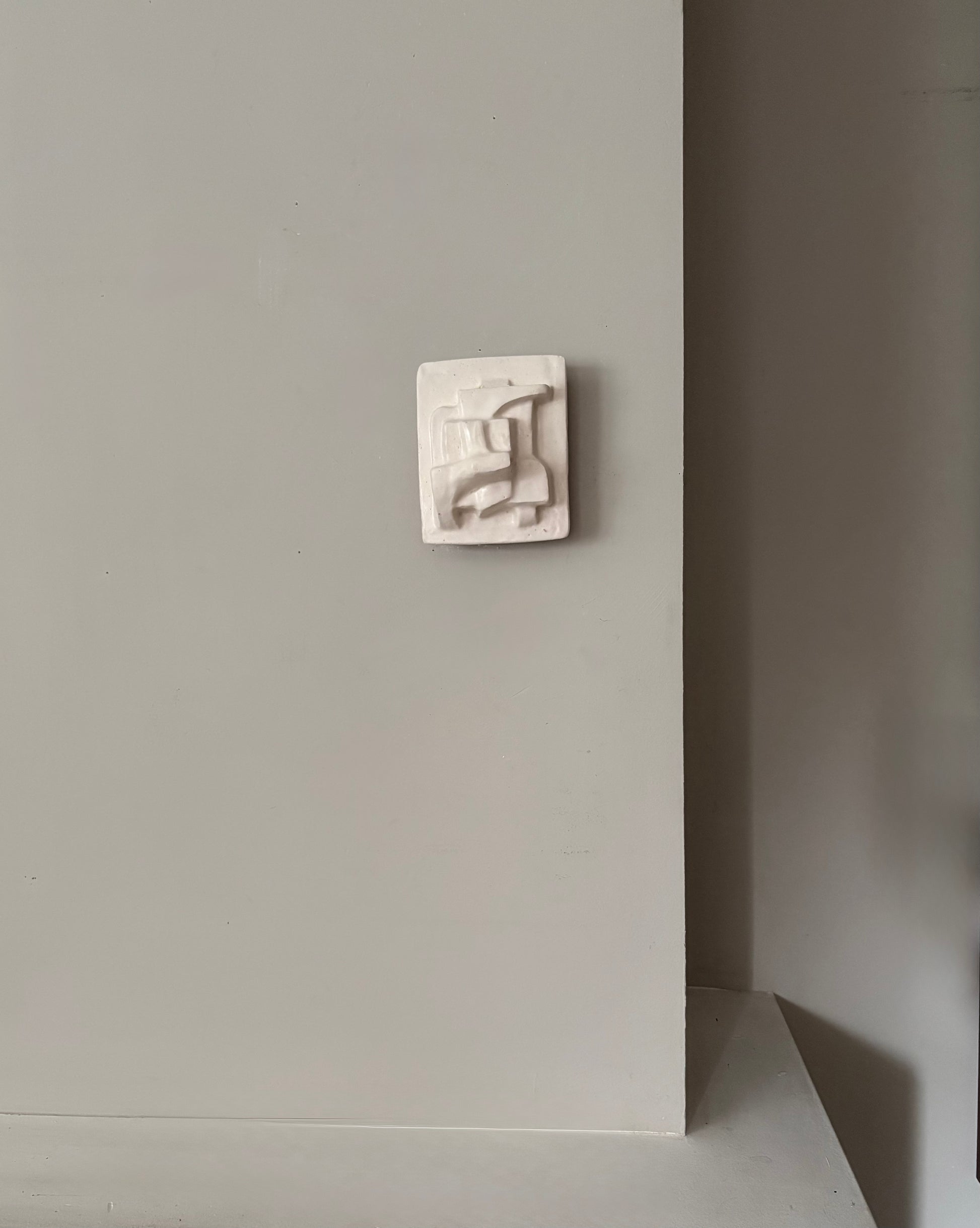 These ceramic objects are provided with a french cleat platform connection, that makes them appear to float from the wall.